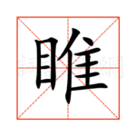 1睢,通用规范汉字,二级汉字,序号5437,多音字,读音是(huī 或 suī),目部,共13画,形声字,左右结构,五行属金。 睢字概述 〔睢〕字是多音字,拼音是(huī、suī),部首是目部,总笔画是13画。 〔睢〕字是左右结构,可拆字为“目、隹”,五行属金。 〔睢〕字仓颉码是BUOG,五笔是HWYG,四角号码是60015,郑码是LNI,中文电码是4205,...