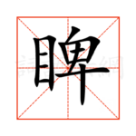1睥,通用规范汉字,二级汉字,序号5439,多音字,读音是(bì 或 pì),目部,共13画,左右结构,五行属水。 睥字概述 〔睥〕字是多音字,拼音是(bì、pì),部首是目部,总笔画是13画。 〔睥〕字是左右结构,可拆字为“目、卑”,五行属水。 〔睥〕字仓颉码是BUHWJ,五笔是HRTF,四角号码是66040,郑码是LNED,中文电码是4211,区位码是78...