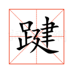 1踺,通用规范汉字,二级汉字,序号5918,读音是(jiàn),足部,共15画,形声字,左右结构,五行属木。 踺字概述 〔踺〕字拼音是(jiàn),部首是足部,总笔画是15画。 〔踺〕字是左右结构,可拆字为“𧾷、建”,五行属木。 〔踺〕字仓颉码是RMNKQ,五笔是KHVP,四角号码是65140,郑码是JIXB,区位码是8561。 〔踺〕字的UNICODE是U+...