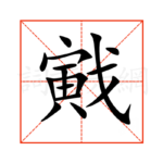 1戭,通用规范汉字,三级汉字,序号7825,读音是(yǎn),戈部,共15画,左右结构。 戭字概述 〔戭〕字拼音是(yǎn),部首是戈部,总笔画是15画。 〔戭〕字是左右结构,可拆字为“寅、戈”。 〔戭〕字仓颉码是JCI,五笔是PGMA,四角号码是33850,郑码是WDOH。 〔戭〕字的UNICODE是U+622D,位于UNICODE的中日韩统一表意文字 (基...