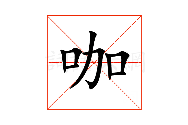 咖,通用规范汉字,一级汉字,多音字,读音是(kā或gā),口部,共8画,形声字,左右结构,五行属木。