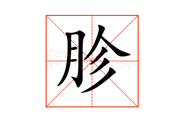 〔胗〕字是左右结构,可拆字为“月、㐱”或“⺼、㐱”,五行属金。