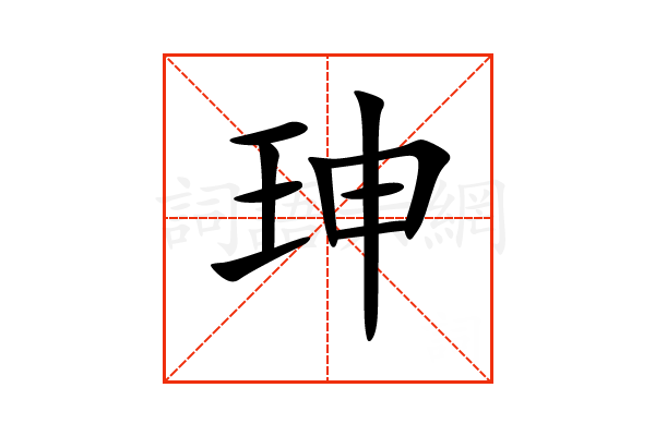 珅,通用规范汉字,三级汉字,序号6760,读音是(shēn),王部,共9画,形声字,左右结构,五行属金。