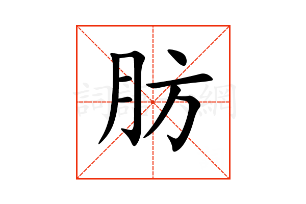 肪,通用规范汉字,一级汉字,读音是(fáng),月部,共8画,左右结构,五行属水。