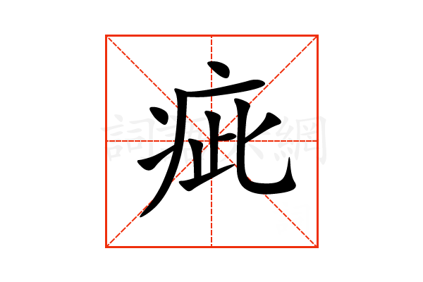 〔疵〕字是半包围结构,可拆字为“疒、此”,五行属金。