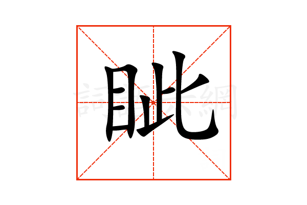 〔眦〕字是左右结构,可拆字为“目、此”,五行属火。
