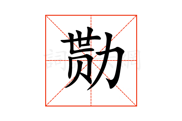 勚,通用规范汉字,三级汉字,序号7125,读音是(yì),力部,共11画,会意字,左右结构。