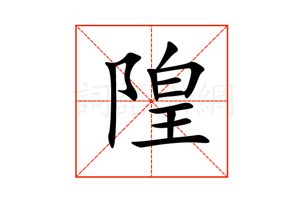 〔隍〕字造字法是形声。从阜( fù ),表示与地形地势的高低上下有关,皇声。本义是没有水的护城壕。