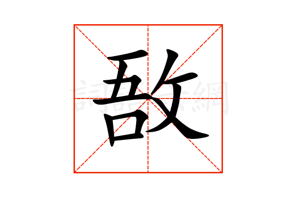 〔敔〕字是左右结构,可拆字为“吾、攵”。