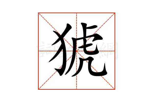 〔猇〕字是左右结构,可拆字为“犭、虎”。