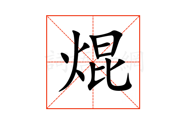 焜,通用规范汉字,二级汉字,序号5273,读音是(kūn),火部,共12画,形声字,左右结构,五行属火。