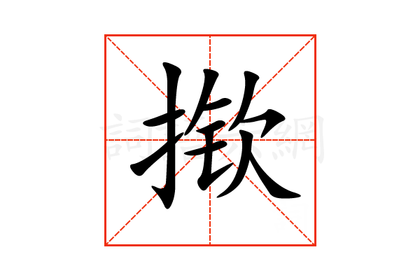 〔揿〕字是左中右结构,可拆字为“扌、钦”,五行属金。