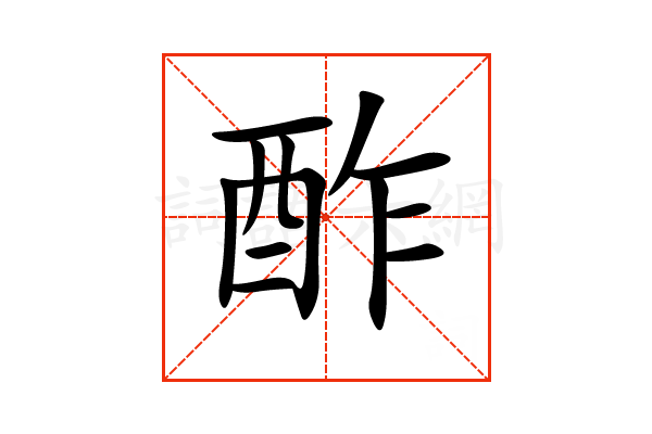 〔酢〕字是左右结构,可拆字为“酉、乍”,五行属金。