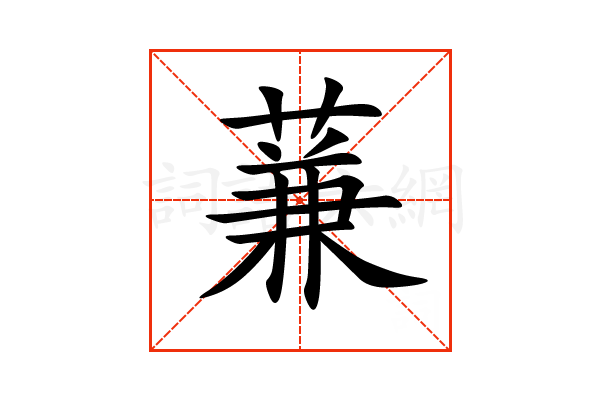 蒹,通用规范汉字,二级汉字,序号5387,读音是(jiān),艹部,共13画,形声字,上下结构,五行属木。