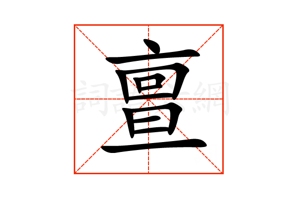 〔亶〕字是上下结构,可拆字为“㐭、旦”,五行属火。