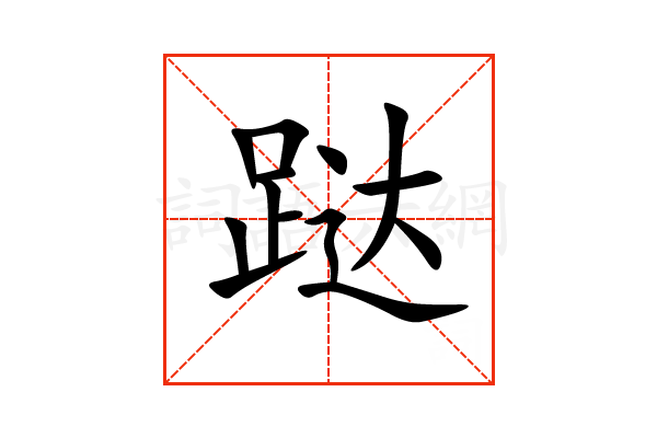 跶,通用规范汉字,二级汉字,序号5453,读音是(dá),足部,共13画,形声字,左右结构。