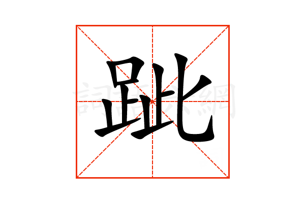 跐,通用规范汉字,二级汉字,序号5455,多音字,读音是(cī 或 cǐ),足部,共13画,形声字,左右结构,五行属金。