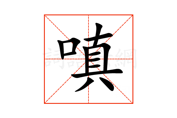 〔嗔〕字造字法是形声。从口,真声。本义是盛大。同“阗”。
