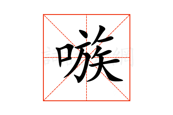 1.形声。从口,族声。本义:使狗;发出使狗咬人的声音。