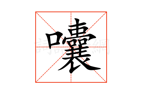 囔,通用规范汉字,二级汉字,序号6496,读音是(nāng),口部,共25画,形声字,左右结构,五行属火。