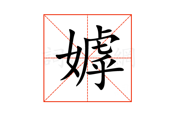 嫭,通用规范汉字,三级汉字,序号7743,读音是(hù),女部,共14画,左右结构。