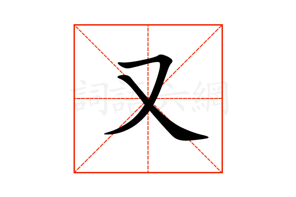 又,通用规范汉字,一级汉字,读音是(yòu),又部,共2画,象形字,独体字,五行属土。