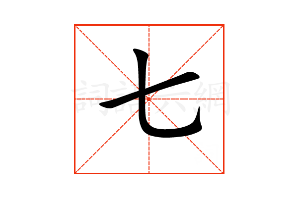 〔七〕字在《通用规范汉字表》的一级字表中,序号0007,属常用字。