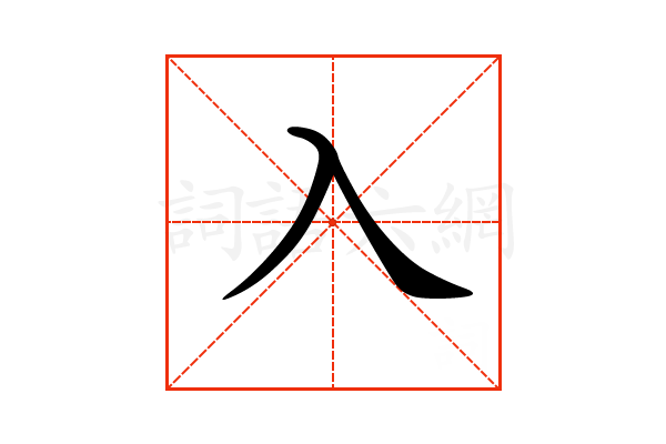 入,通用规范汉字,一级汉字,读音是(rù),入部,共2画,象形字,独体字,五行属金。