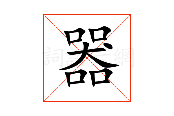 器,通用规范汉字,一级汉字,读音是(qì),口部,共16画,会意字,上下结构,五行属木。