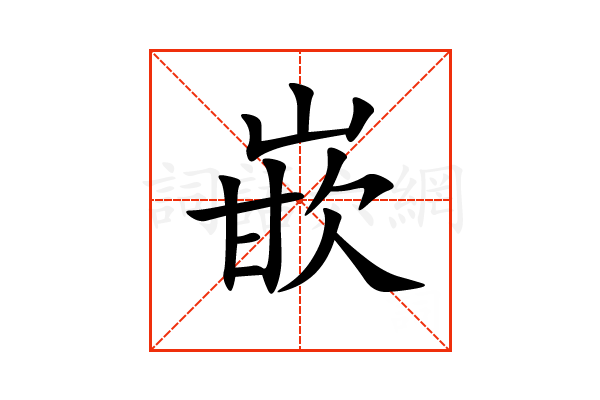 嵌,通用规范汉字,一级汉字,多音字,读音是(qiàn或kàn),山部,共12画,形声字,上下结构,五行属木。