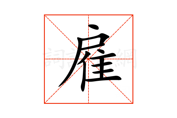 雇,通用规范汉字,一级汉字,读音是(gù),隹部,共12画,形声字,半包围结构,五行属木。