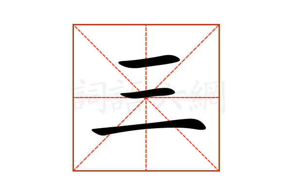 〔三〕字是独体字,三叠字 (上下三叠字),五行属金。