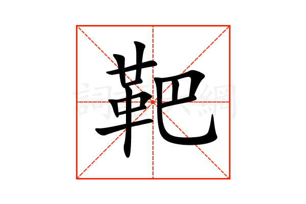 〔靶〕字造字法是形声。从革,巴声。从“革”,表示与皮革有关。本义是辔首垂下部,即辔革。