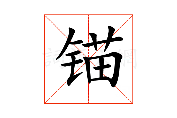 ◎(形声。从金,苗声。本义:船停泊时所用的设备。一般为铁制或钢制)同本义 。