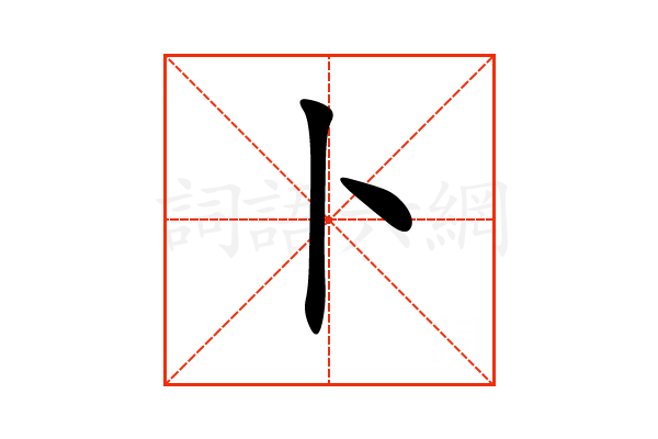 〔卜〕字造字法是象形。甲骨文字形,象龟甲烧过后出现的裂纹形。汉字部首之一,从“卜”的字多与占卜有关。本义是占卜。