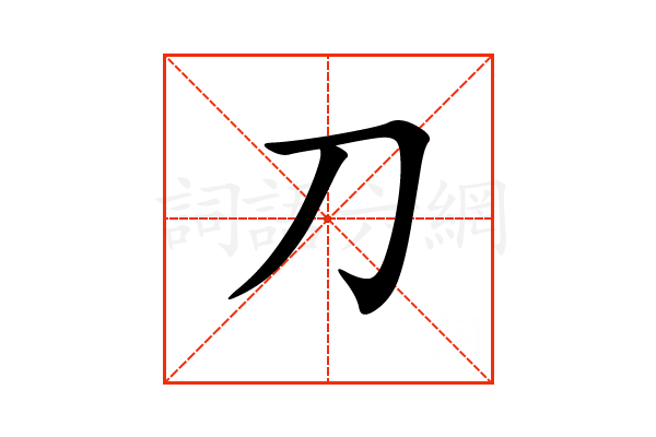 1.象形。小篆字形,象刀形。汉字部首之一。本义:古代兵器名。