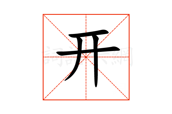 开,通用规范汉字,一级汉字,读音是(kāi),廾部,共4画,会意字,独体字,五行属木。