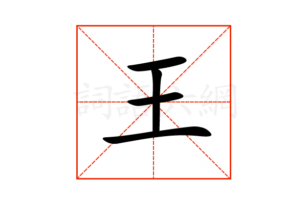 1.象形字。王字的甲骨文为斧钺之形,斧钺为礼器,象征王者之权威。本义:天子、君主。