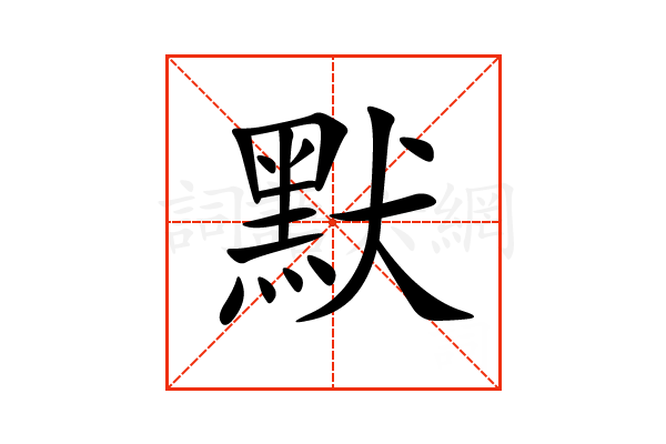 〔默〕字是左右结构,可拆字为“黑、犬”,五行属水。