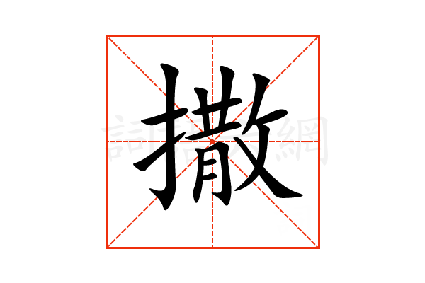 撒,通用规范汉字,一级汉字,序号3192,多音字,读音是(sā 或 sǎ),扌部,共15画,形声字,左中右结构,五行属水。