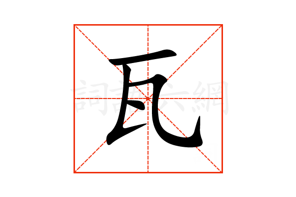 〔瓦〕字造字法是象形。象屋瓦俯仰相承的样子。“瓦”是汉字的一个部首。本义是已烧土器的总称。