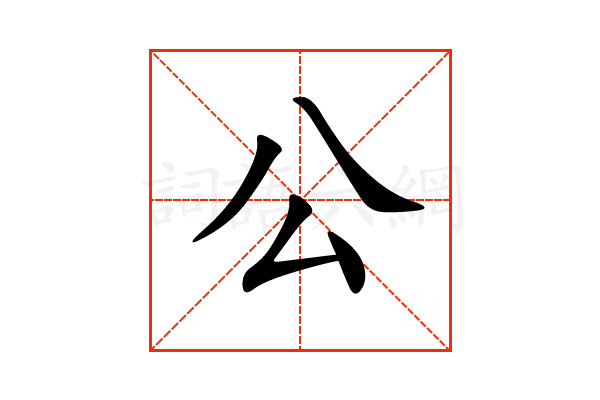 公,通用规范汉字,一级汉字,读音是(gōng),八部,共4画,会意字,上下结构,五行属木。