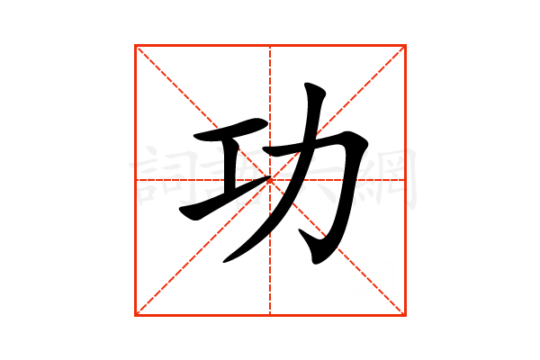 〔功〕字造字法是会意。从力,工声。“工”亦兼表字义,表示用力从事工作。本义是功绩,功业;功劳。