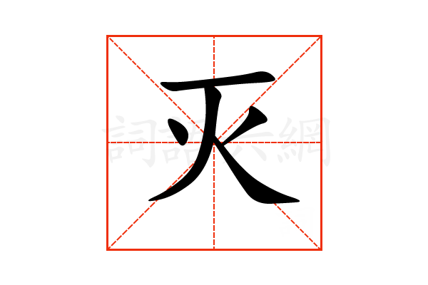 灭,通用规范汉字,一级汉字,序号0223,读音是(miè),火部,共5画,形声字,上下结构,五行属水。