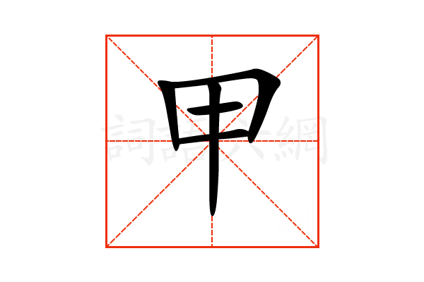 甲,通用规范汉字,一级汉字,序号0239,读音是(jiǎ),田部,共5画,指事字,独体字,五行属木。