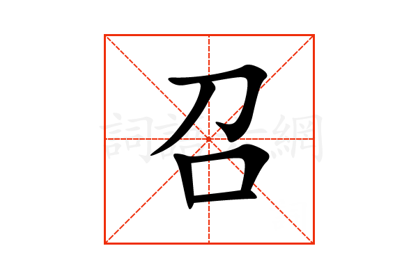 〔召〕字是上下结构,可拆字为“刀、口”,五行属火。