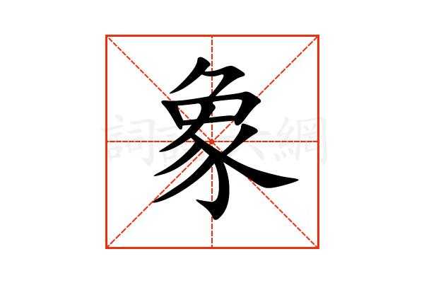 〔象〕字是上下结构,可拆字为“⺈、丿、口、𰀪、𡿨”或“、𧰨”,五行属金。