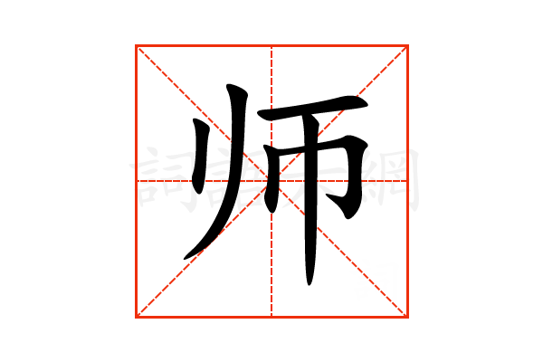 师,通用规范汉字,一级汉字,序号0413,读音是(shī),巾部,共6画,会意字,左右结构,五行属金。