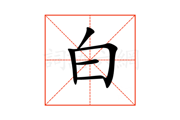 白,通用规范汉字,一级汉字,读音是(bái),白部,共5画,象形字,独体字,五行属水。