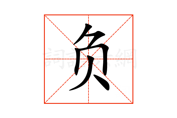负,通用规范汉字,一级汉字,序号0503,读音是(fù),贝部,共6画,会意字,上下结构,五行属水。